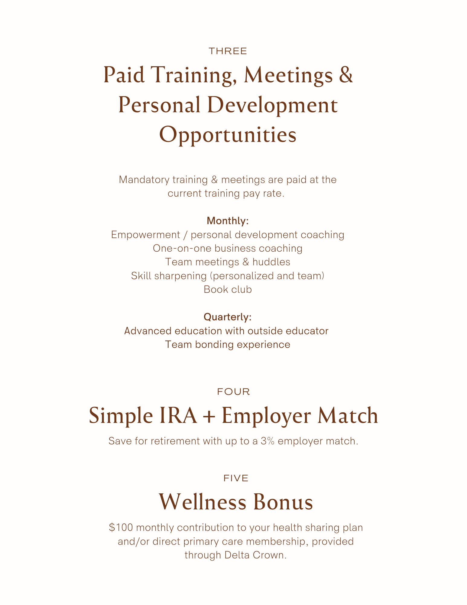 Simple IRA retirement plan with up to 3% company match.